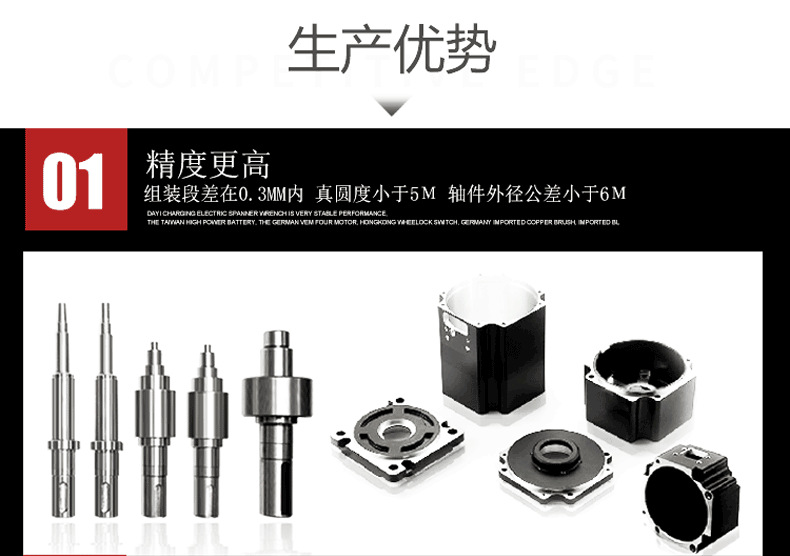 專業加工生產各種型號伺服電機零配件:電機外殼、電機前蓋、電機后蓋、電機后罩、電機軸心、編碼器、編碼器軸心等五金件,公司配備精密龍澤機、二次元、2.5次元、三次元、放大鏡等各種精密儀器!為客戶提供更精準、更完美的產品